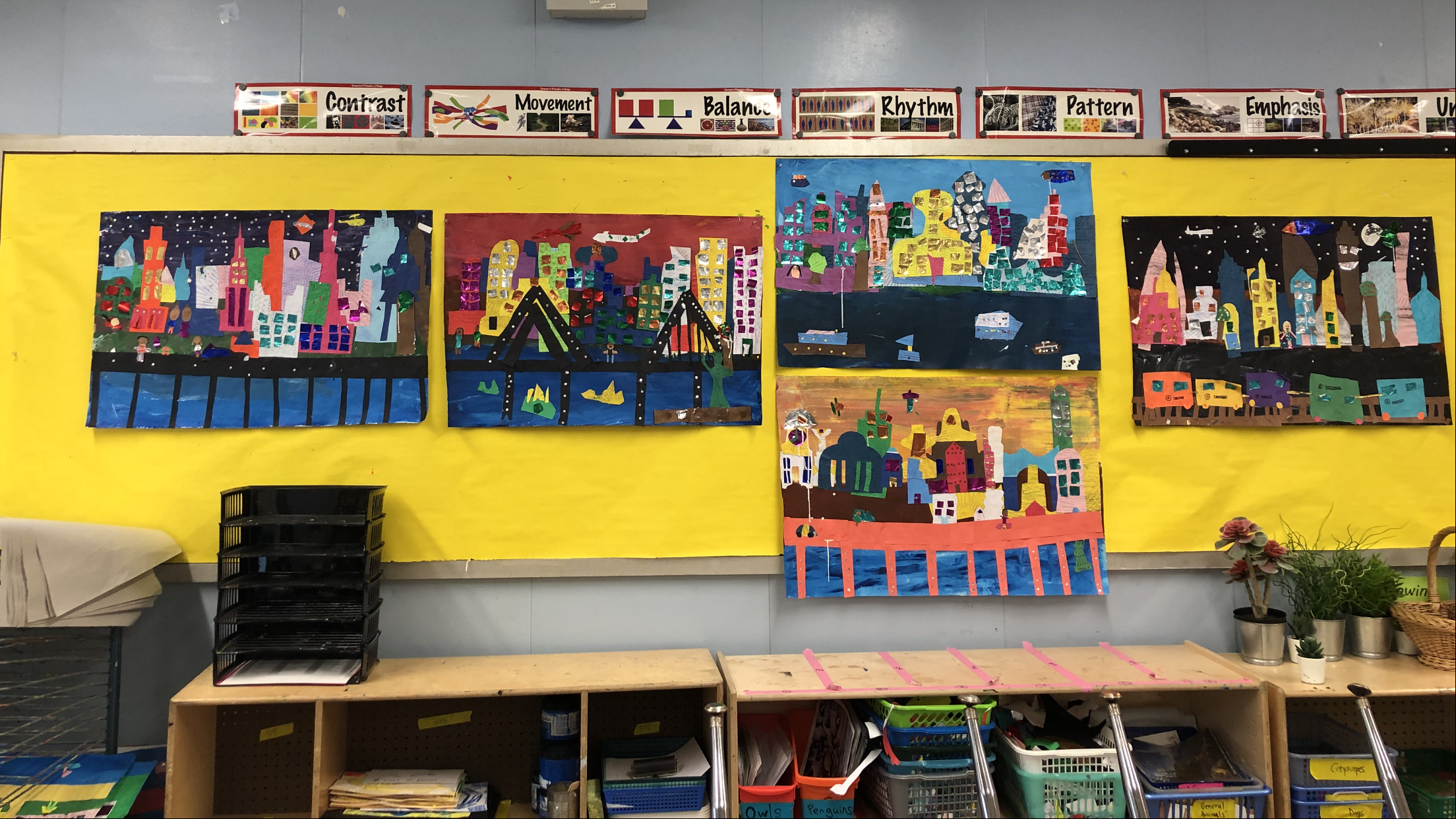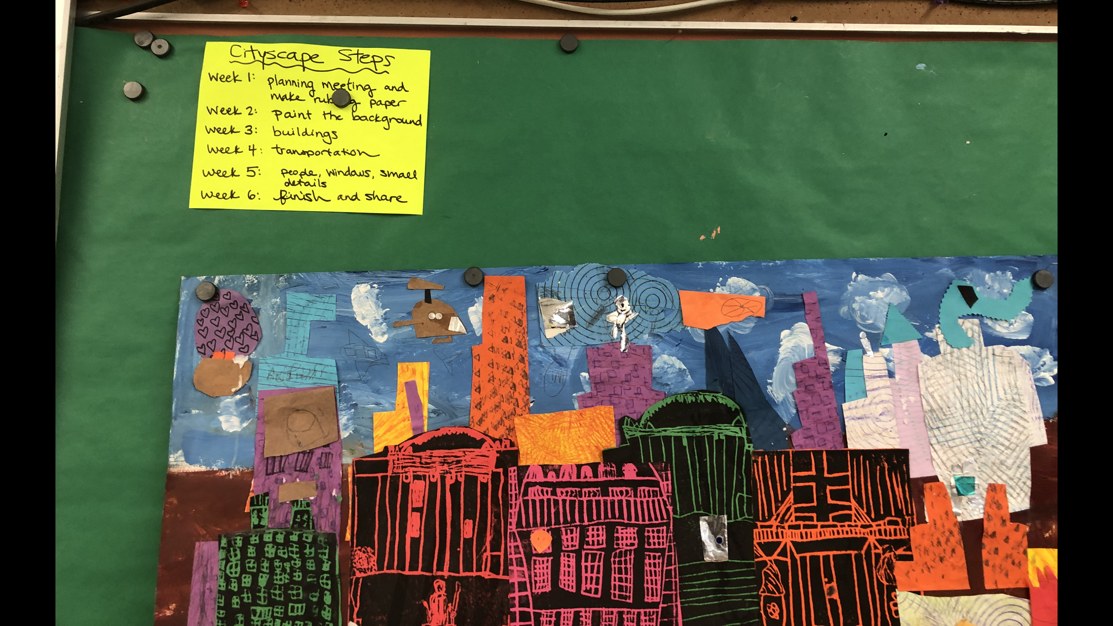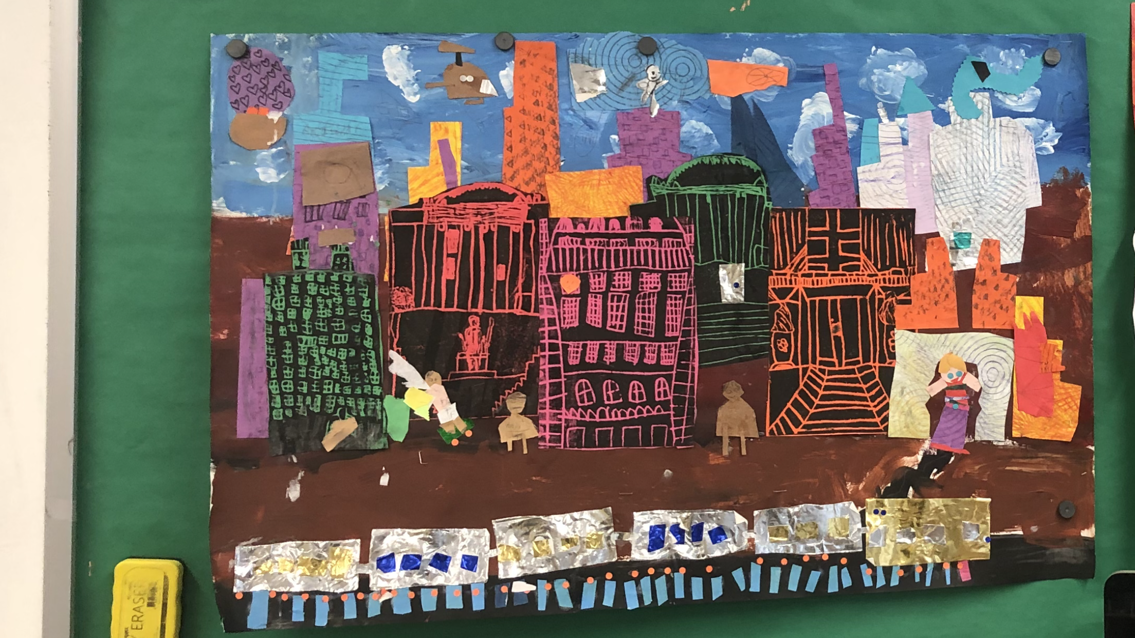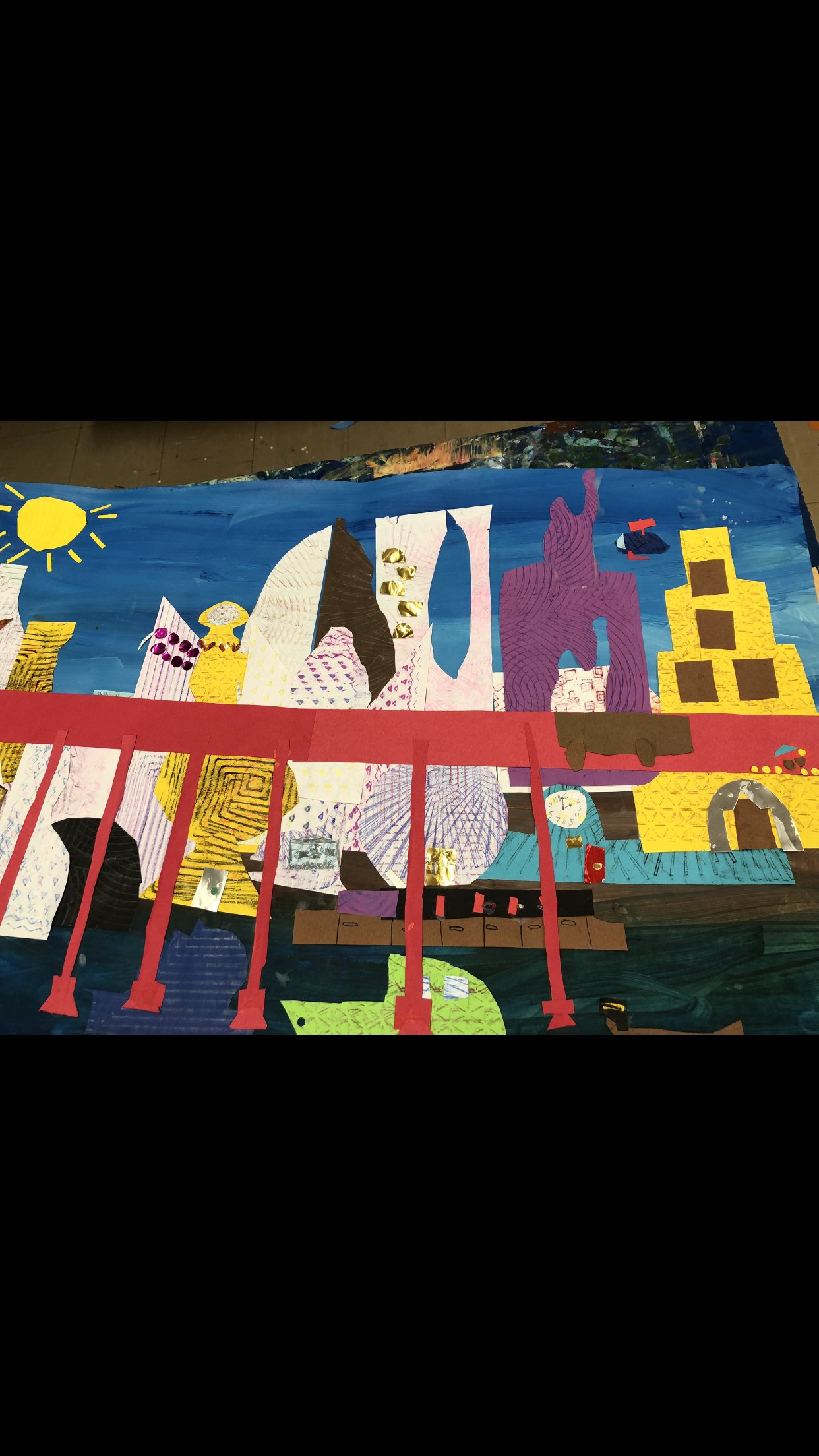 In this unit the students teamed up with their cohorts to collaborate on an imagined city, complete with painted backgrounds of skies and filled with imaginative collages inspired by the architecture of New York City. It was great to see them working together to build a city of their dreams.