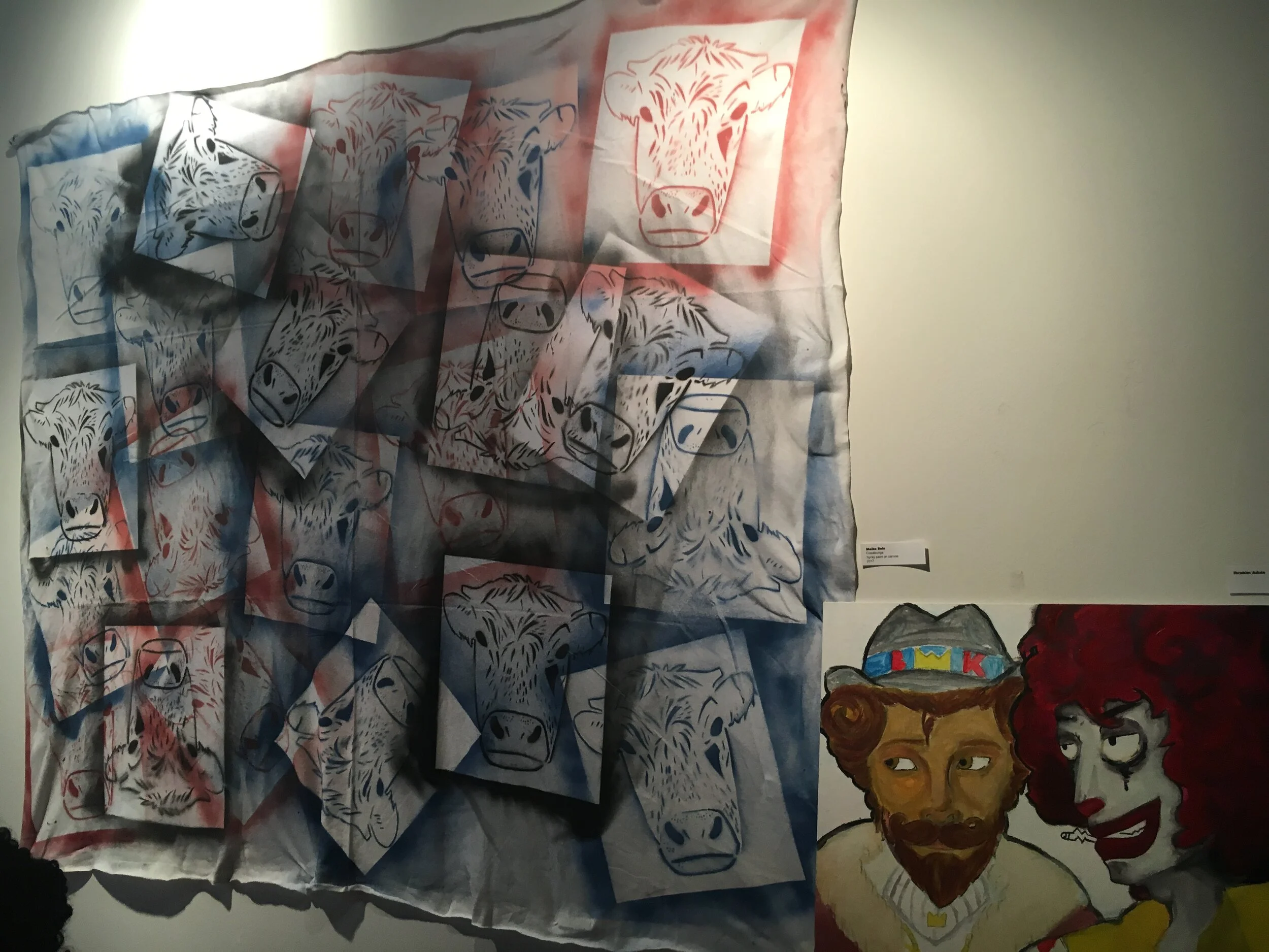 For City Art Lab using Banksy for inspiration these high schoolers created pieces for an exhibit that dealt with social justice issues such a gun violence, unity, and social change. They created stencils to make a relief design and the spray painted using a variety of colors for impact.